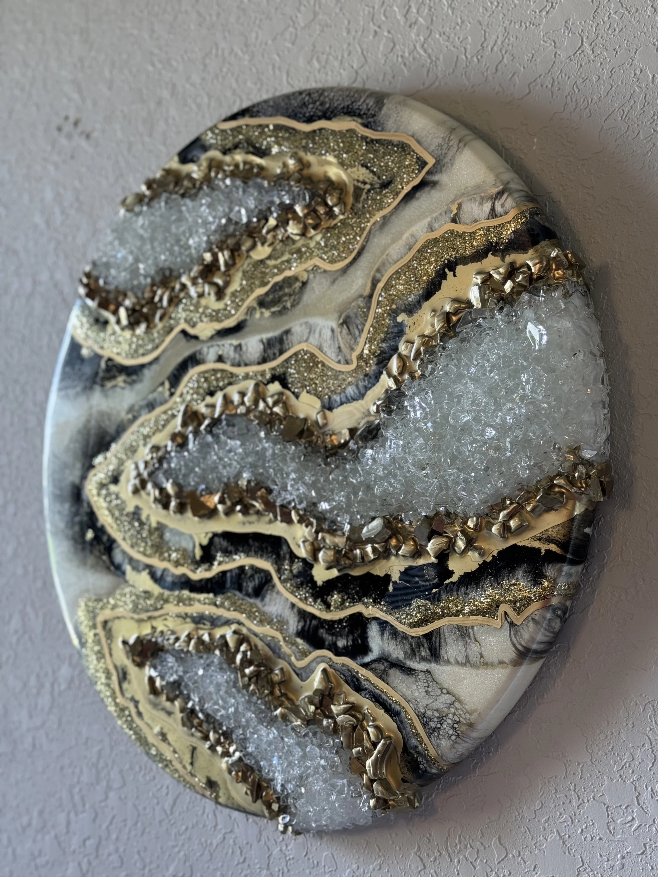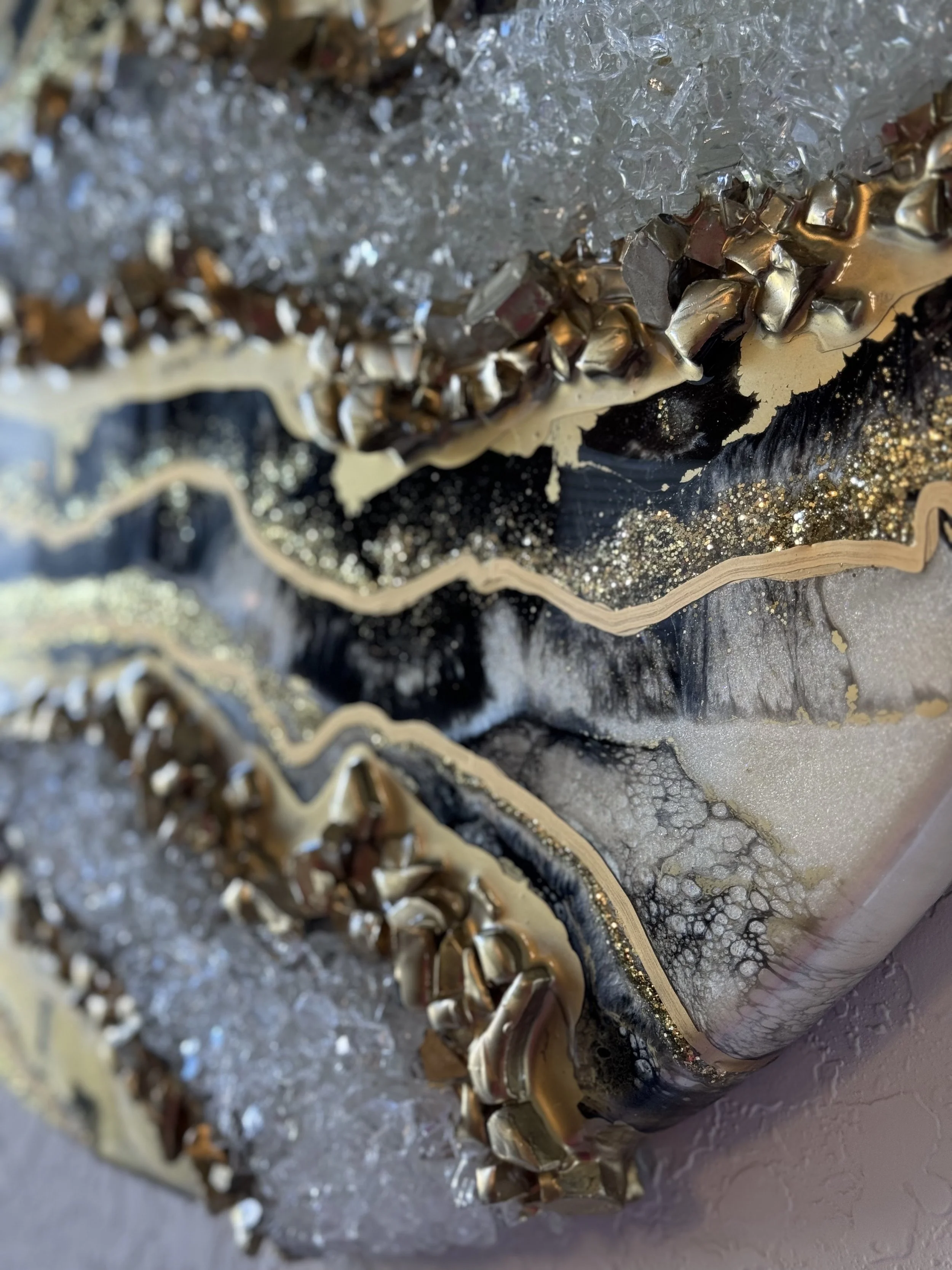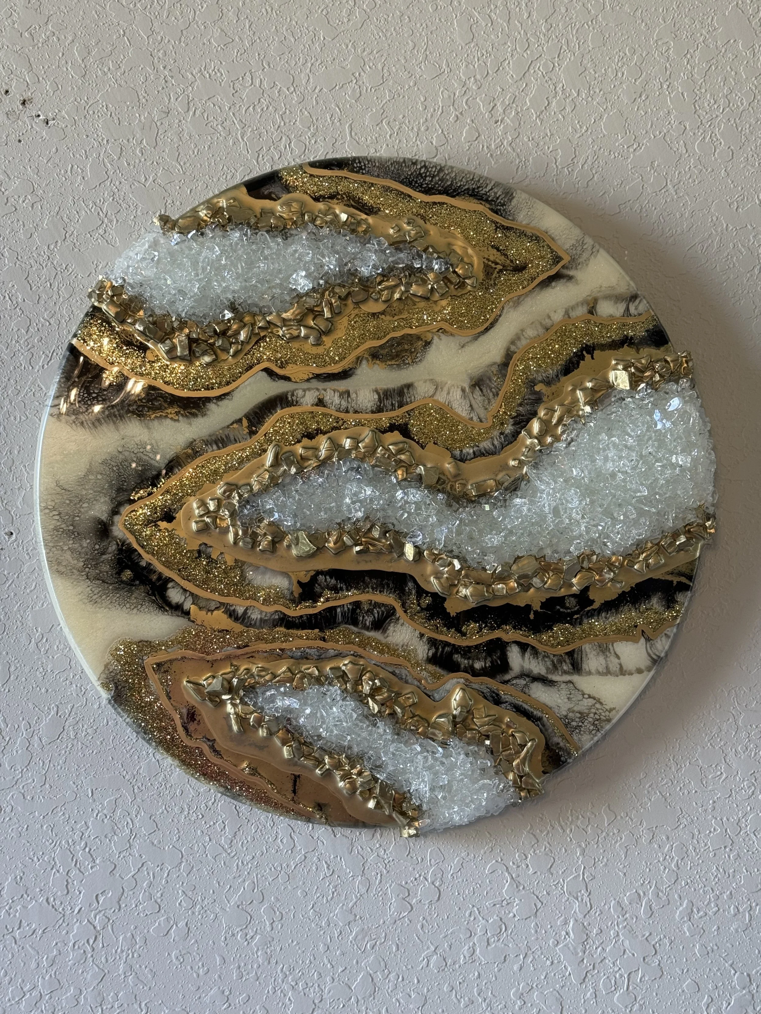 White and Gold Amethyst Resin and fire glass on wood24 x 24 x 1 inches View fullsize View fullsize View fullsize View fullsize View fullsize
